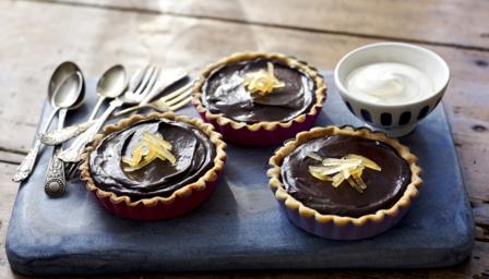 The chocolate tarts make a quick and easy dessert. Make it even easier by using ready-made tart cases.
